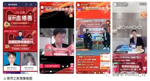 从多店多账号统一时间统一权益的联动直播到同一账号主子直播间来联动直播,居然之家在淘宝直播上的创新在行业内是有目共睹的。同时在“老汪来了”董事长直播IP外,在门店直播体系发展过程沉淀下来的“约惠总经理”、“三五成团”、“超级e主播”等直播IP,并延伸出“居然直播惠”这一常态化门店直播营销主题。通过在手机淘宝搜索“居然直播惠”就可观看居然之家线下卖场的直播,由此可见淘宝直播已然成为居然之家卖场一个日常工作和营销场。