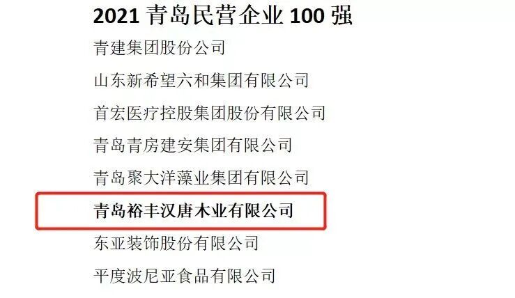 【喜讯】裕丰汉唐荣获2021年青岛制造业百强企业称号