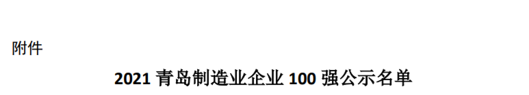 青岛制造业企业100强榜单由市工信局会同市企业联合会共同开展,经企业自主申报、各区市工业和信息化主管部门推荐、专家审核,初步确定名单。