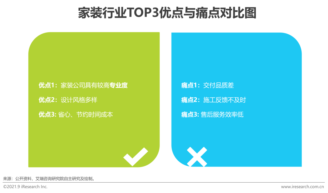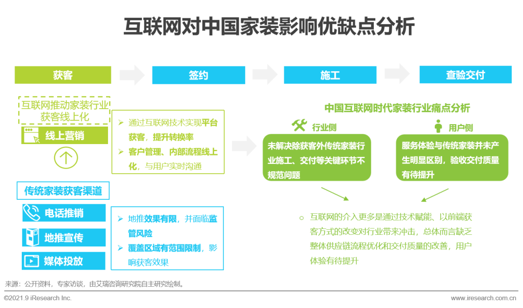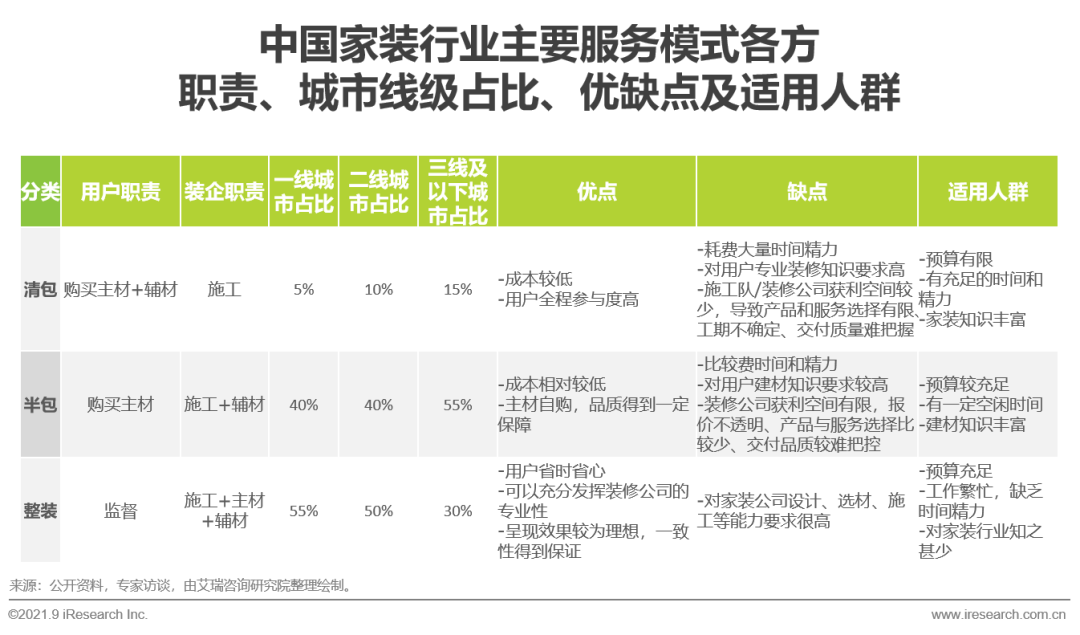随着疫情催生出大量家装需求,广阔的家装市场吸引了阿里、京东等互联网巨头纷纷入局,凭借其高效的引流获客能力、资源整合能力以及成熟的平台运营能力,实现“硬装+软装”、“产品+服务”全方位的家装家居一站式解决方案,对家装行业带来了全新冲击,但是通过对比不难发现在供应链整合/一体化、装修专业化程度、用户忠诚度等维度家装企业的优势更加明显。