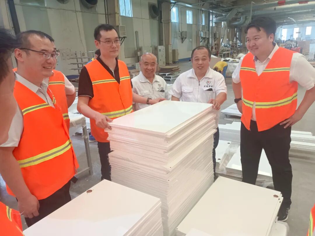 青岛首胜实业有限公司董事长李德生热情接待了曹总一行,并陪同参观了智造工厂。座谈中,李德生董事长就公司发展史向曹总一行进行详细讲解,首胜与宜家公司合作了25年,公司管理规范性,设备制造水平先进,品控措施到位,作为基础材料商与国内一线零售及工装家居头部品牌都有战略合作。曹总表示首胜实业作为青岛家居行业的标杆企业,在车间6S管理、信息化处理、高定材料生产制造方面的优势非常明显,双方今后可在高端家居制造领域互通有无,资源共享。曹总一行受到公司董事长郑守德的热情接待。丽拓铂尔曼家居专注零售渠道为主,是桔至生活家居生活馆的战略合作商,产品以高端定制为主。曹总对丽拓铂尔曼家居的产品设计给予了高度评价,肯定其作为青岛地区零售界的领军企业为行业发展做出的突出贡献。俏家装饰公司下属企业山东爱格的FORMORE品牌,专注于高端定制材料配套,产品与国际大牌现行产品同步,双方今后可在高端定制领域进行合作,共同发展。
