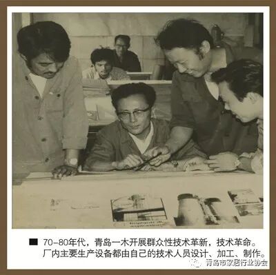 四、1955年冬,对私营企业进行社会主义改造,各类私营木器厂纷纷要求加入“青岛木器生产合作社”(5000元资本以上才可以入社),短短三个月,合作社已发展到550人,到1956年底,厂区增到28处,总面积2万多平方米,总部迁到威海路207号,年产值84万,设业务、会计、生计、人文等4个科室,3大生产车间,产品第一次开始出省,走向全国。