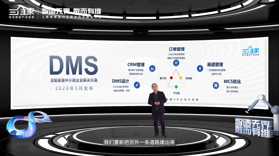 三维家数控产品事业部总监孙春飞介绍道,DMS是专为小微定制家居企业打造的前后端一体化解决方案,能够实现一键出效果图、一键拆单,有效提高企业的拆单效率、降低出错率;强大的排料算法,能有效减少余料废料;企业还能有效进行CRM管理、订单管理和标准化门店渠道管理,实现信息化升级,提高客户转化率和订单准确率。