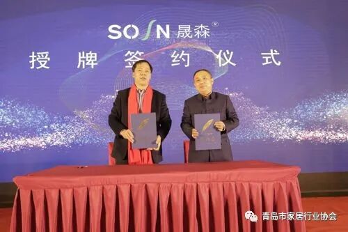 青岛晟森机械有限公司董事长张建军与青岛丽拓铂尔曼家居股份有限公司董事长郑守德签订战略协议,就智能生产线的设计与采购达成意向。
