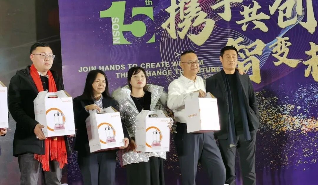 青岛晟森机械有限公司董事长张建军为参加庆典的优秀供货商和代理商代表颁奖。