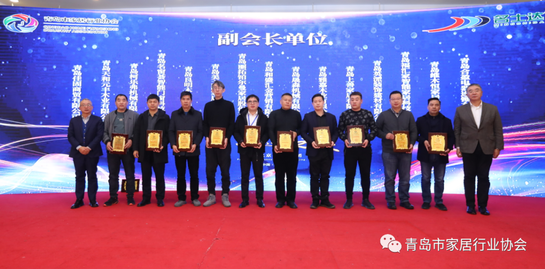 协会授予青岛达翁集团董事长高新敏为青岛市家居行业协会名誉会长、山东省家具协会会长漆勇为青岛市家居行业协会荣誉会长、青岛一木集团股份有限公司董事长殷兆坤为青岛市家居行业协会主席,现场举行了隆重的授牌仪式,同时为青岛市家居行业协会会长戚振香、监事长王炳烨授牌,授牌嘉宾是青岛市工业和信息化局副局长冯伟。随后各位领导共同为青岛市家居行业协会揭牌。