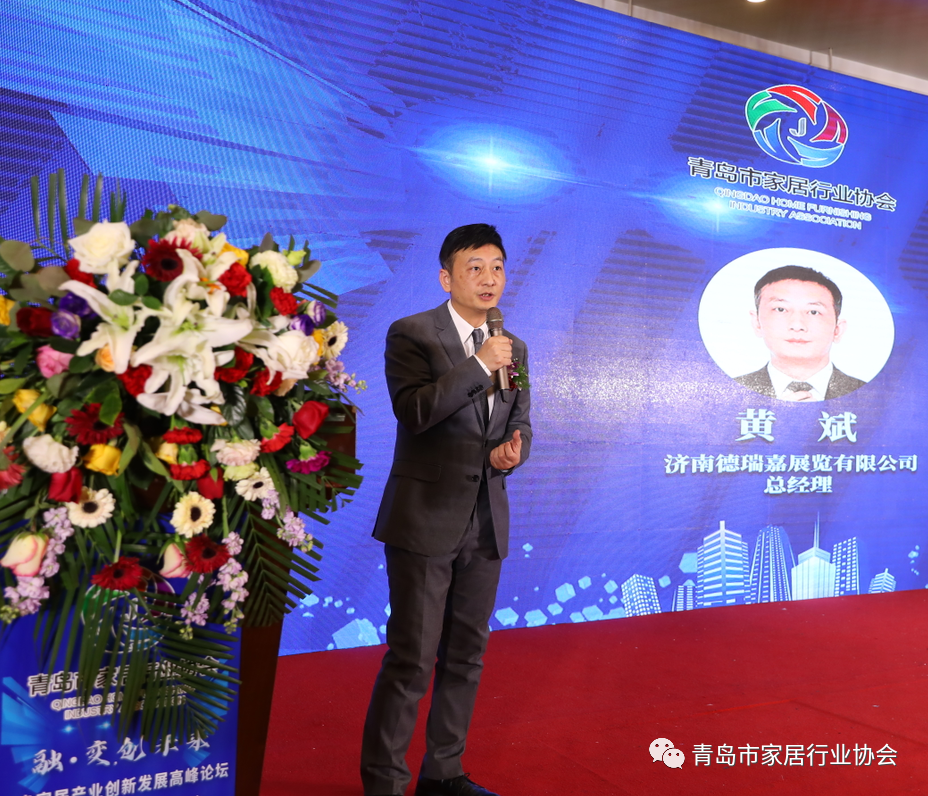 青岛国际家具展主办方,济南德瑞嘉展览有限公司总经理黄斌就“剧变下青岛家具展的未来发展之道”做了精彩分享。