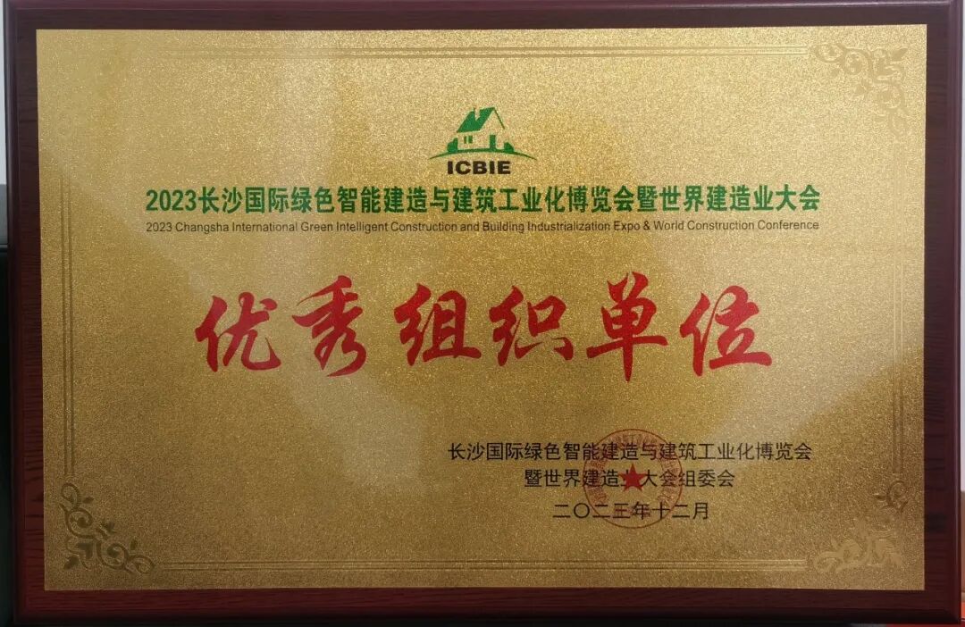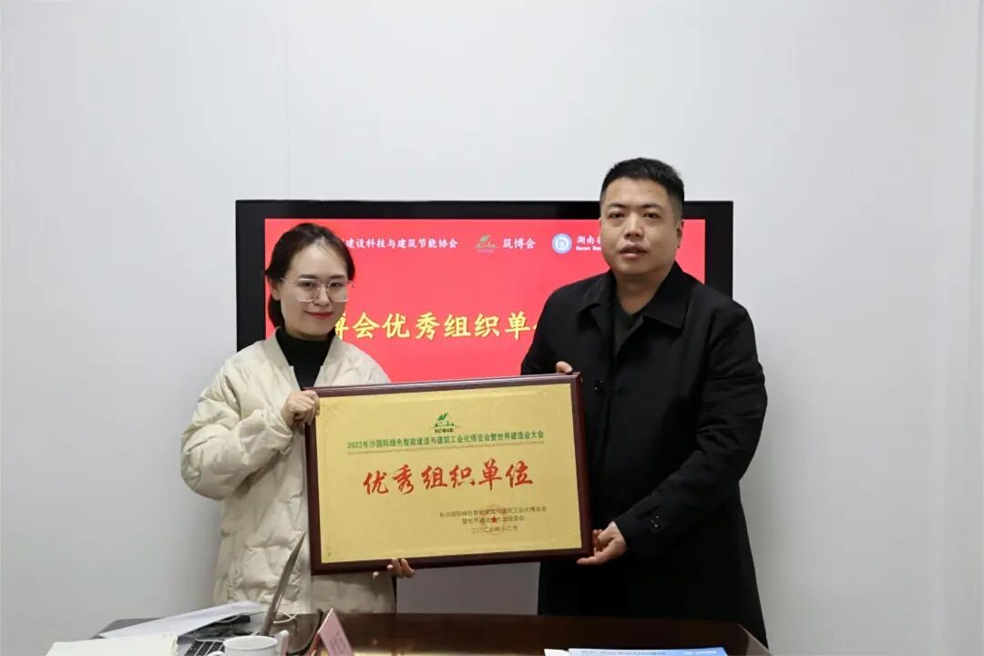 12月20日,2023年长沙国际绿色智能建造与建筑工业化博览会暨世界建造业大会(简称筑博会)“优秀组织单位”授牌仪式于湖南省智能家居产业协会办公室举行,由筑博会组委会秘书处刘洋进行授牌。