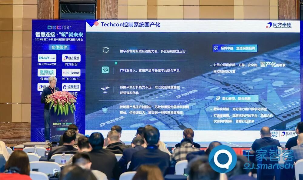 同方泰德产品经理何深带来“国产智能控制系统的创新之路”主题分享。何深表示,同方泰德是中国核工业集团旗下同方股份有限公司在海外拆分上市公司,已在香港联交所主板挂牌上市(HK:01206)。历经二十年,同方泰德在中国始终致力于城市节能一体化服务,专注国内控制器的研发与生产,智慧建筑高效节能解决方案。