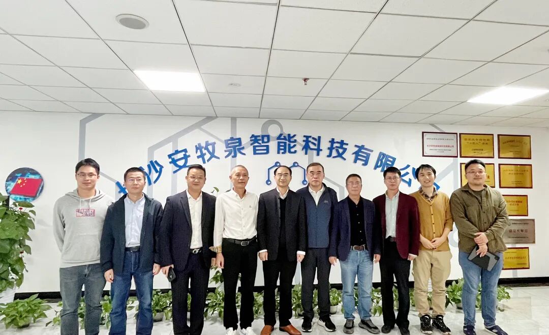 2023年10月14日,湖南省智能家居产业协会范佳俊会长、科技委专家南华大学刘春教授、国防科学技术大学刘列教授、湖南圭业科技有限公司总经理王劲松教授等一行前往长沙安牧泉智能科技有限公司考察调研,安牧泉创始人、董事长朱文辉博士热情接待。