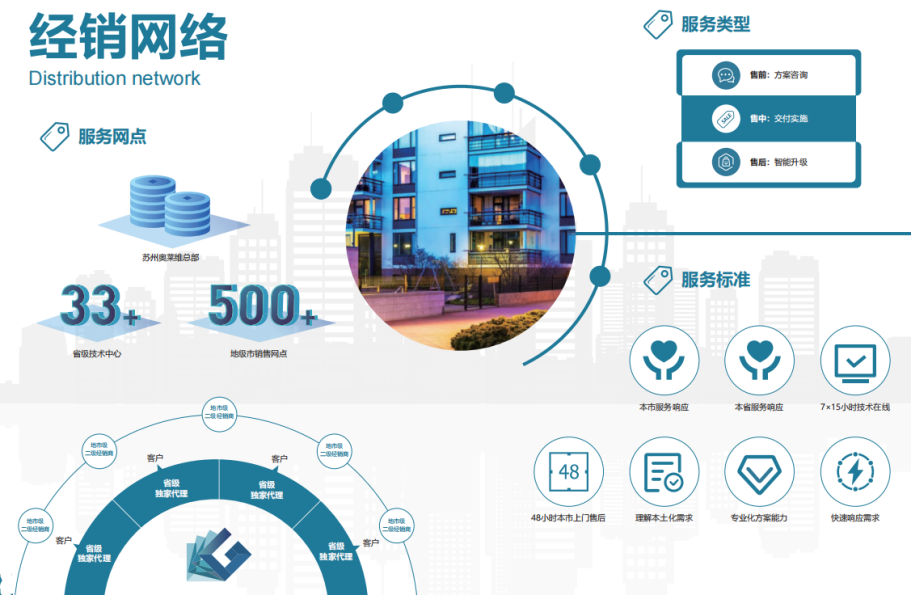 在专注于技术产品研发的同时,奥莱维基于市场客观规律,搭建了拥有持久生命力的蜂巢运营体系,囊括了30+省级独家代理,500+二级经销商。实现了区域市场全覆盖。在充分保障合作伙伴利益的基础上,确保能为行业客户提供高水准的产品与服务,达成市场良性发展的经营目标。