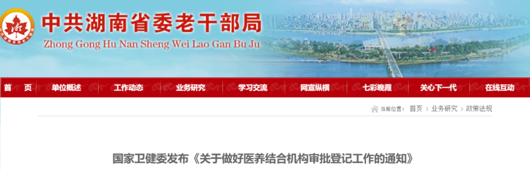 近日,国家卫生健康委办公厅、民政部办公厅、市场监管总局办公厅、国家中医药局办公室四部门联合发布《关于做好医养结合机构审批登记工作的通知》(以下简称《通知》)。