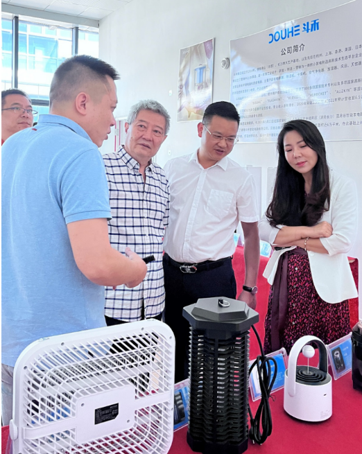 随后,调研组来到了小家电代表企业斗禾。斗禾集团成立于2014年,拥有佛山(总部)、长沙两大生产基地,以及先后在杭州、上海、香港、美国、日本、新加坡设立了营销中心/办事处,是一家集工业设计-研发-制造-营销为一体的小家电制造高新技术生态平台企业。斗禾主要业务有环境电器和厨房电器,主要产品有电暖器、除湿机、干燥机、空气净化器、加湿器、风扇、灭蚊灯以及电热类及搅拌类厨房小电器,产品远销国内外。调研组详细了解了斗禾产品,并对斗禾的全球营销网络布局以及高度智能化的生产管理表示了肯定。调研组刘宏教授表示,斗禾的灭蚊灯产品是生物技术与智能技术跨学科融合应用的典范,值得学习与推广。