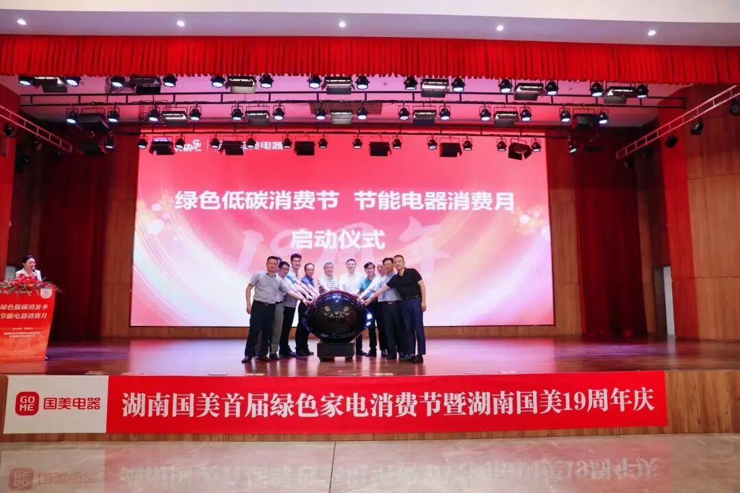 7月19日,由湖南国美电器有限公司主办,湖南省商务厅、湖南日报报业集团指导、湖南省智能家居产业协会承办的“湖南国美首届绿色家电消费节暨湖南国美19周年庆”启动仪式在长沙新湖南大厦举行。海尔、海信、晚安、美的、格力、方太、海信、松下、创维、华为、拓维等厂商到场一起助力此次绿色家电消费节。