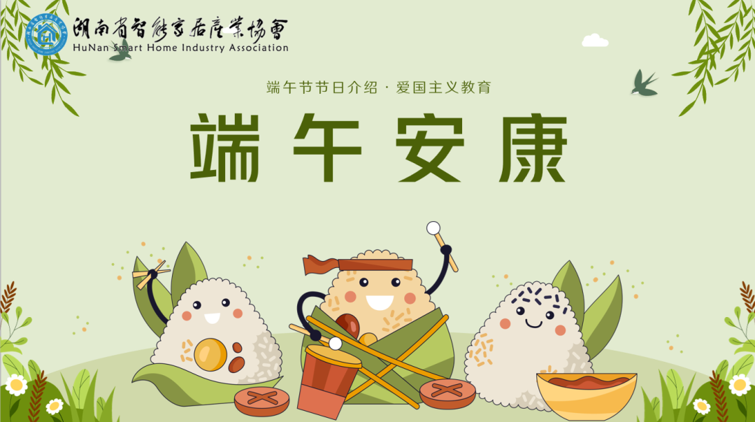 端午节 ,为你端来一生幸福,为你端来一世甜蜜,为你端来一年平安,为你端来一季的健康,为你端来一天的吉祥。湖南省智能家居产业协会祝愿您端午节安康!