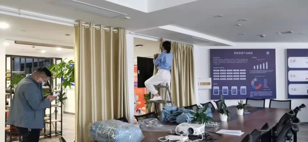 10月28日,协会新增理事单位湖南港州家居有限公司为协会办公室更换窗帘,窗帘更换后,协会办公室氛围焕然一新,更具科技感和归属感。港州家居加入协会,能更好的与智能家居系统服务商、门店进行配合,为客户提供完整的智慧窗帘解决方案。