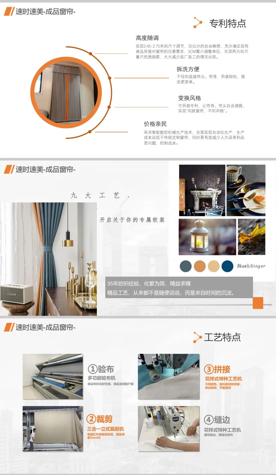 2019年创立拥有专利工艺的自调试成品窗帘品牌:速时速美-成品窗帘,力求打造中国成品布艺窗帘第一品牌。
