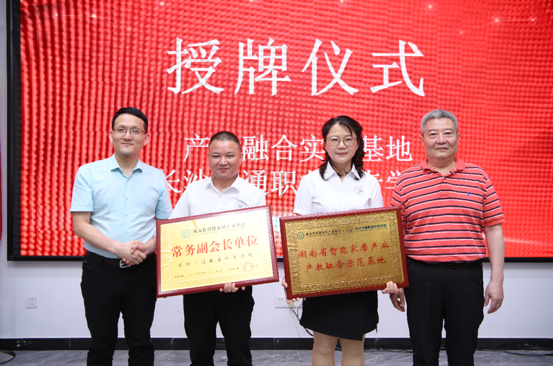 2021年6月19日,值此湖南省智能家居产业协会成立一周年之际,我会特与长沙市三通职业中专学校达成深度战略合作,湖南省智能家居产业协会执行会长范佳俊为其颁发“常务副会长单位”、“湖南省智能家居产业协会产教融合示范基地”牌匾,为夯实产业基础与未来发展定义了新的基调。