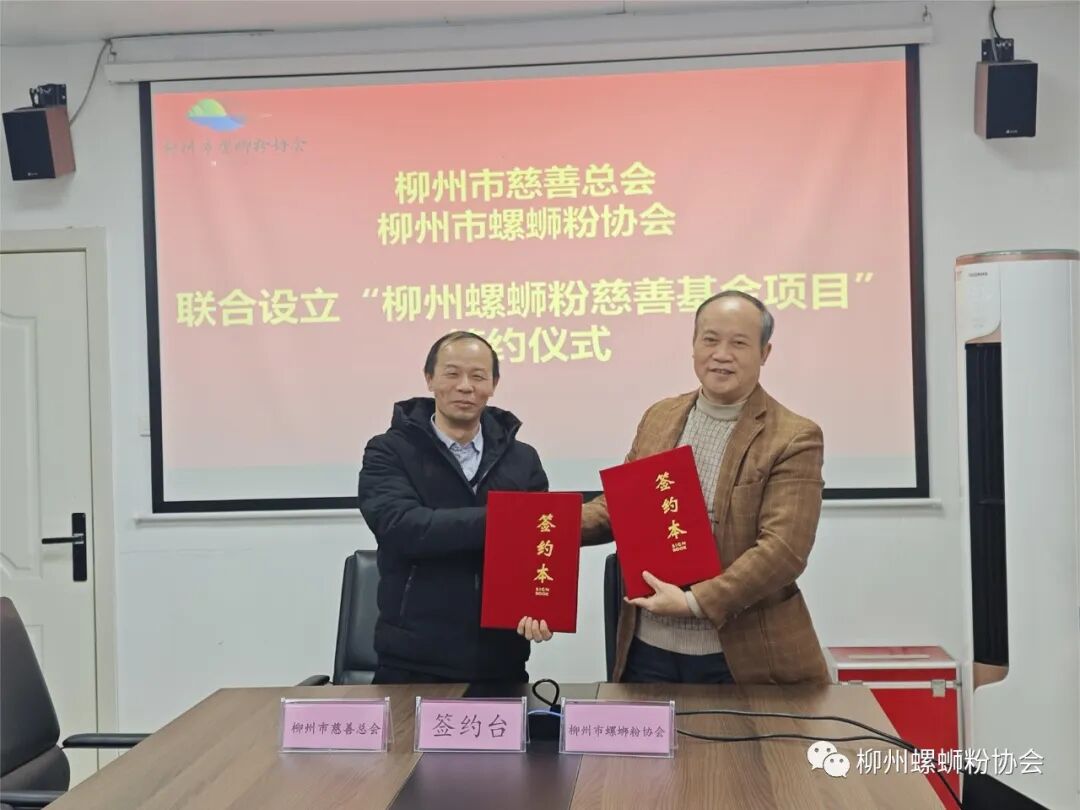 12月20日下午,柳州市螺蛳粉协会与柳州市慈善总会举行联合设立“柳州螺蛳粉慈善基金项目”签约仪式。