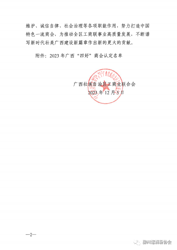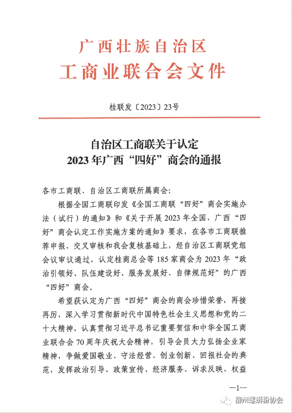 【喜报】柳州市螺蛳粉协会荣获2023年广西“四好”商会荣誉称号
