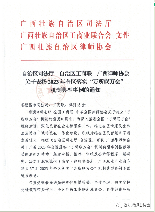 【喜报】柳州市螺蛳粉协会荣获2023年全区落实“万所联万会”机制典型事例通报表扬