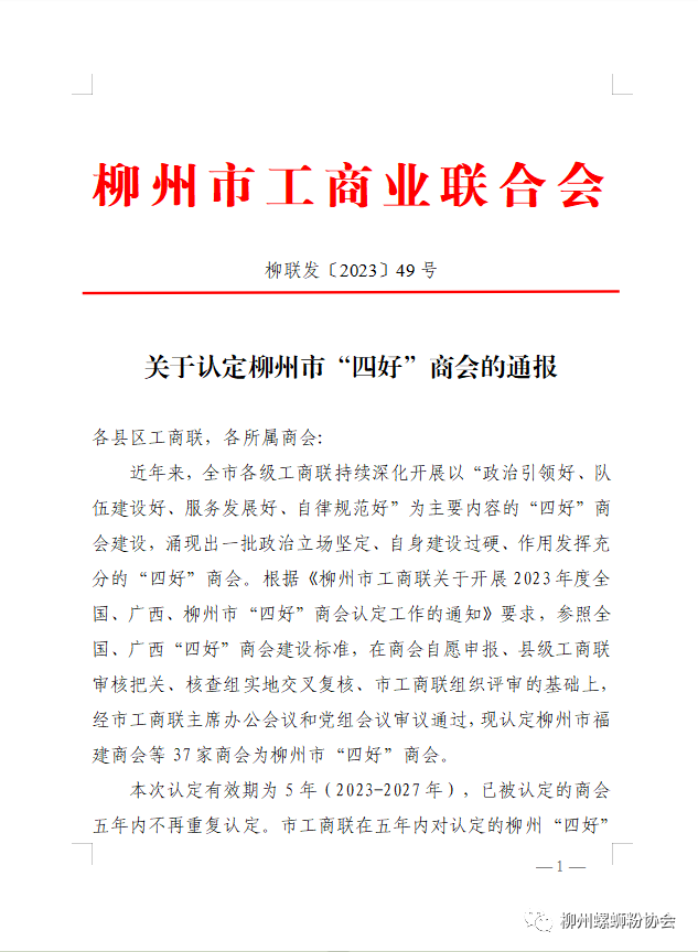 【喜报】柳州市螺蛳粉协会荣获柳州市“四好”商会荣誉称号