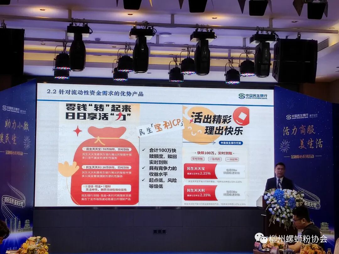 会上,民生银行南宁分行行长助理曹卫华介绍了民生银行开展的系列供应链客商大会活动成果,表示要与柳州螺蛳粉产业链客户紧密合作、共商发展,共同助力柳州螺蛳粉产业高质量发展。