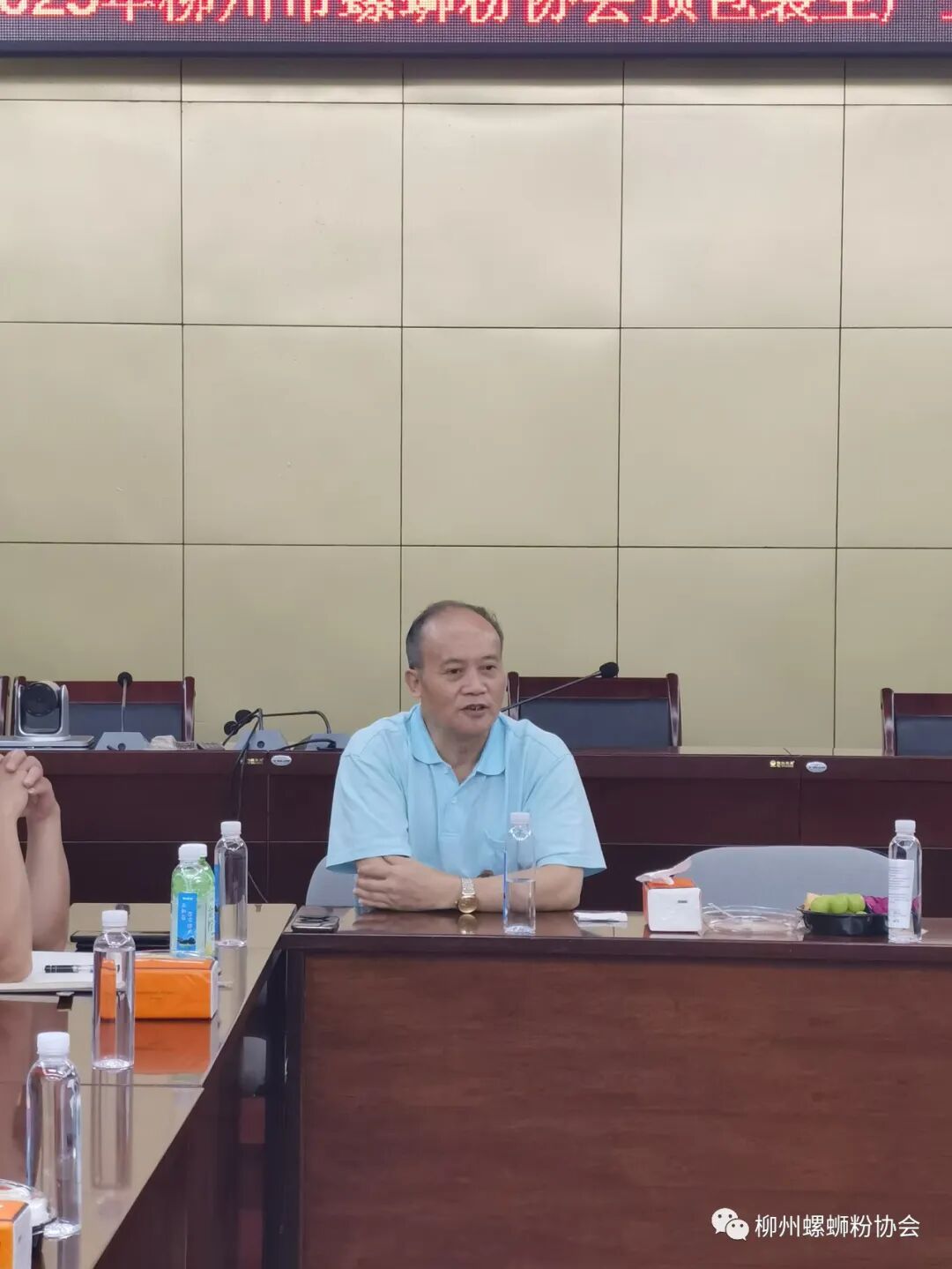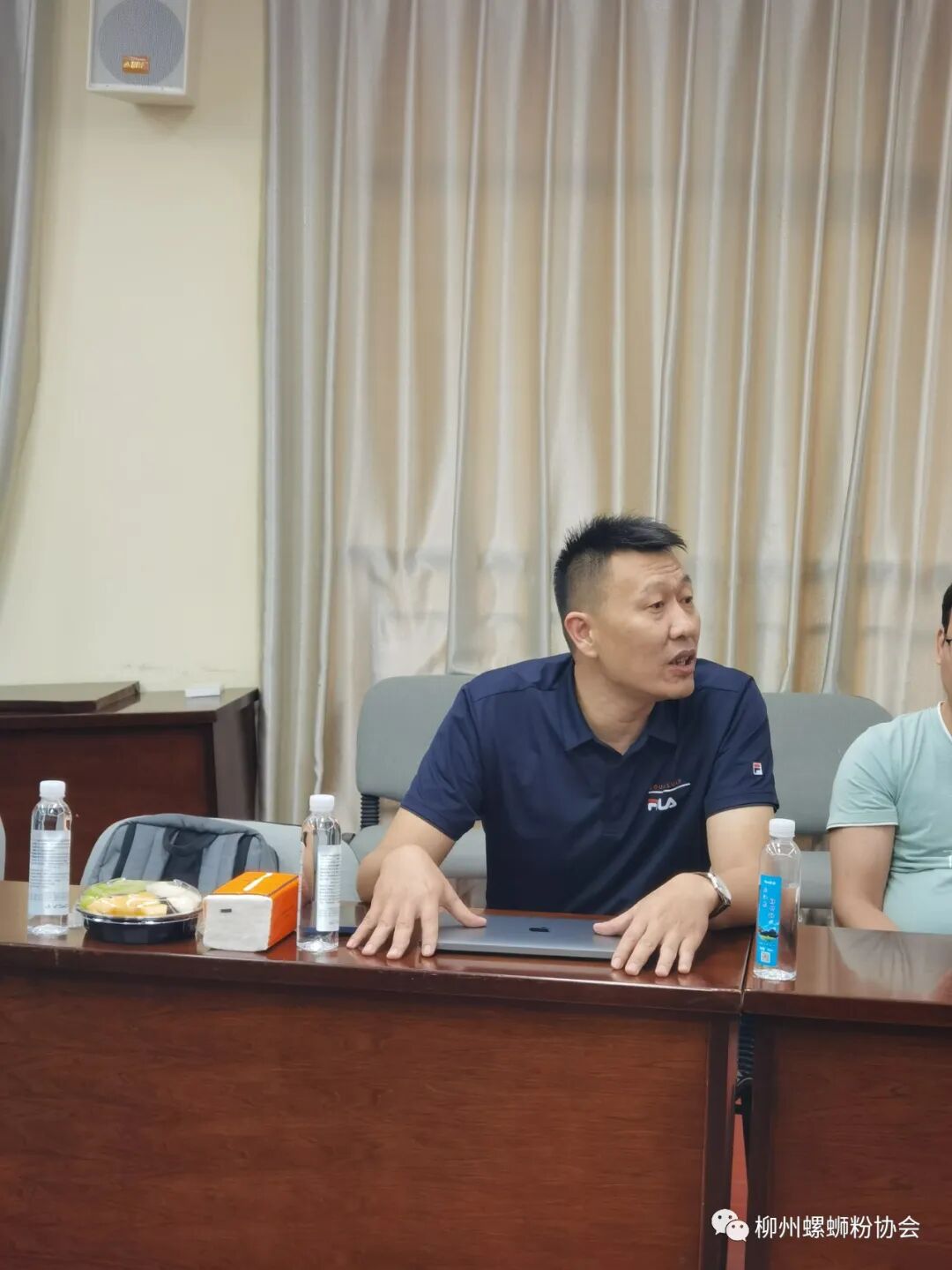 市螺蛳粉协会预包装柳州螺蛳粉产业发展工作委主任单位,广西螺霸王食品科技有限公司代表线下事业部总监李明伟率先发言。他感谢了柳州市委、市政府及各政府职能部门对柳州螺蛳粉产业发展的支持和帮助。同时,他提出后疫情时代,预包装的产销都面临着一些新的情况和困难,他呼吁大家团结一致,守住高质量发展的底线。