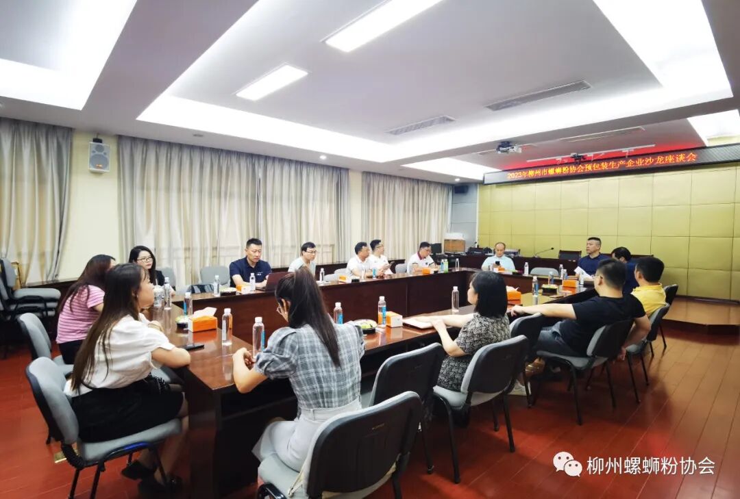 2023年8月16日下午,柳州市螺蛳粉协会组织协会三大工作委员会,召集我市部分龙头预包装生产企业在市商务局9楼召开预包装生产企业沙龙交流会。会上各生产企业畅所欲言,分析了近期预包装生产销售面临的一些情况,提出了下一步发展所遇到的问题,表达了如何帮助企业健康发展诉求,分享了经营过程中的优秀经验。