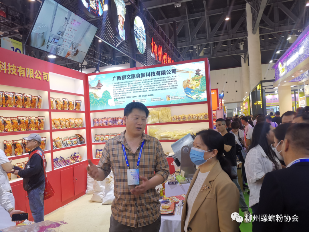 (广西商务厅二级巡视员曹轲笛参观柳州螺蛳粉展位)
