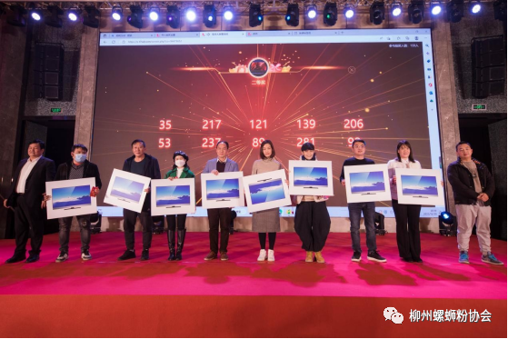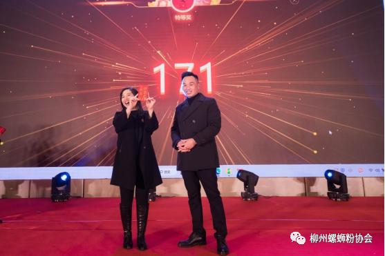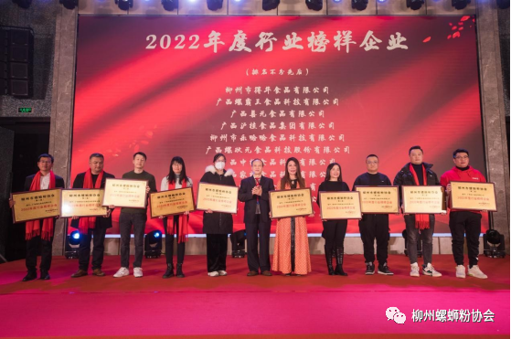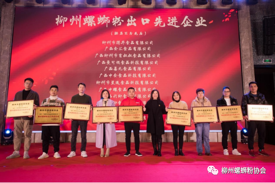 (“柳州螺蛳粉出口先进企业”代表上台领奖)