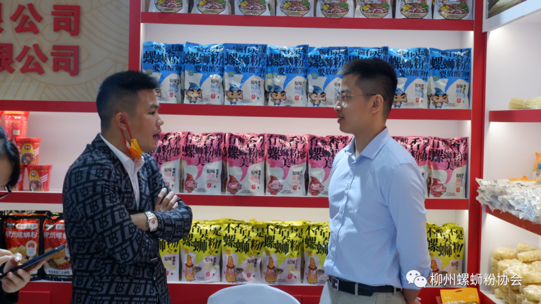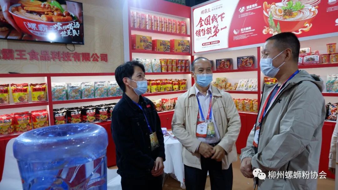 (柳州市商务局副局长关雁在螺霸王展位巡展)