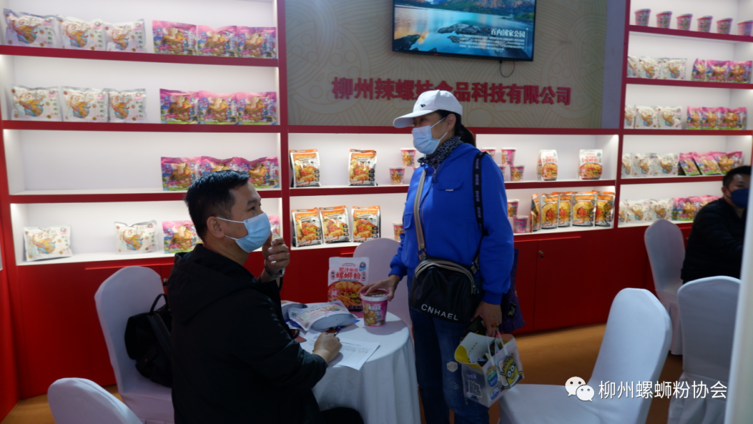 (客商在辣螺妹展位进行业务洽谈)