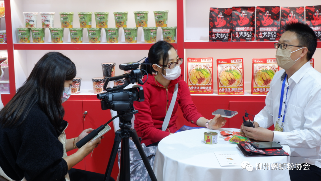 (善元代表在向媒体宣传柳州螺蛳粉)