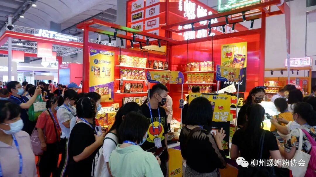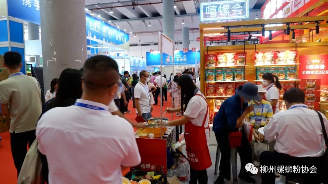 (参展人群在排队试吃在嘻螺会螺蛳粉)