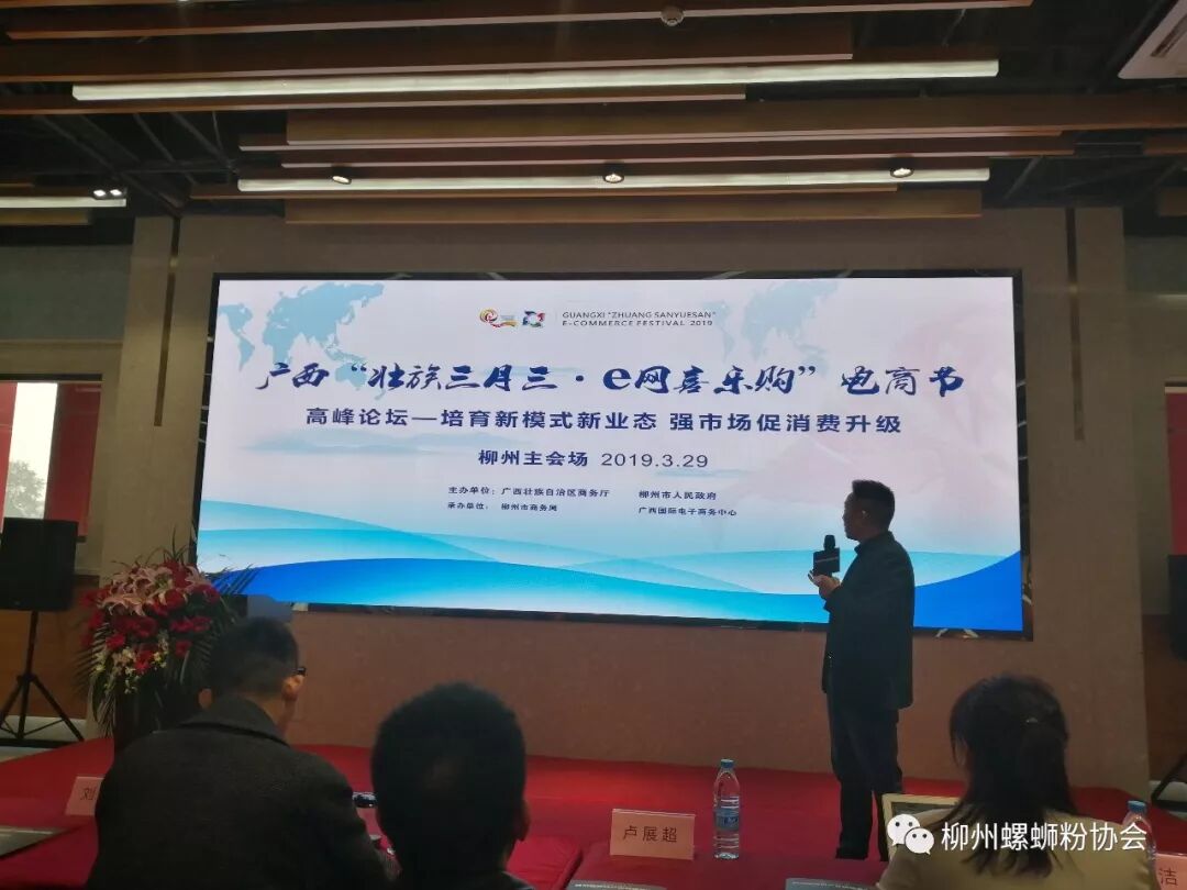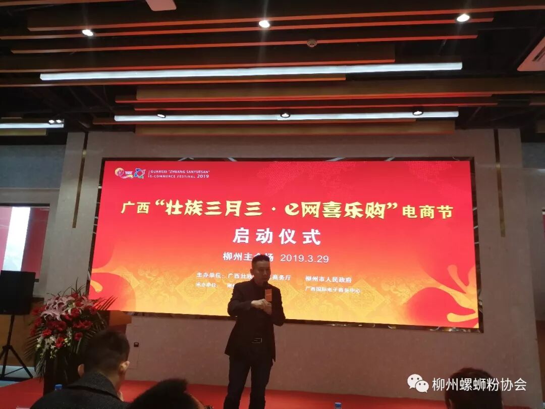 2019年3月26日上午9点,柳州市商务局在柳州螺蛳粉电商产业园举行“柳州螺蛳粉产业战略发布会”,宣布阿里巴巴聚划算与柳州螺蛳粉亲密合作,通过电商平台,推动柳州螺蛳粉产业的发展。市商务局刘伯臣局长在发布会上致辞,阿里巴巴营销平台事业部市场总监苏誉、阿里巴巴聚划算食品生鲜行业总监旭宏、中国工业设计协会副会长、华东理工大学艺术设计与传媒学院院长 程建新等在发布会上介绍电商发展战略。柳州市乐哈哈食品科技有限公司董事长韦锦福代表螺蛳粉企业在会上作 发言。商务局电商科阳小渠科长介绍广西“壮族三月三.e网喜乐购”电商节柳州主会场各项活动的安排,要求各螺蛳粉生产销售企业积极踊跃参会。