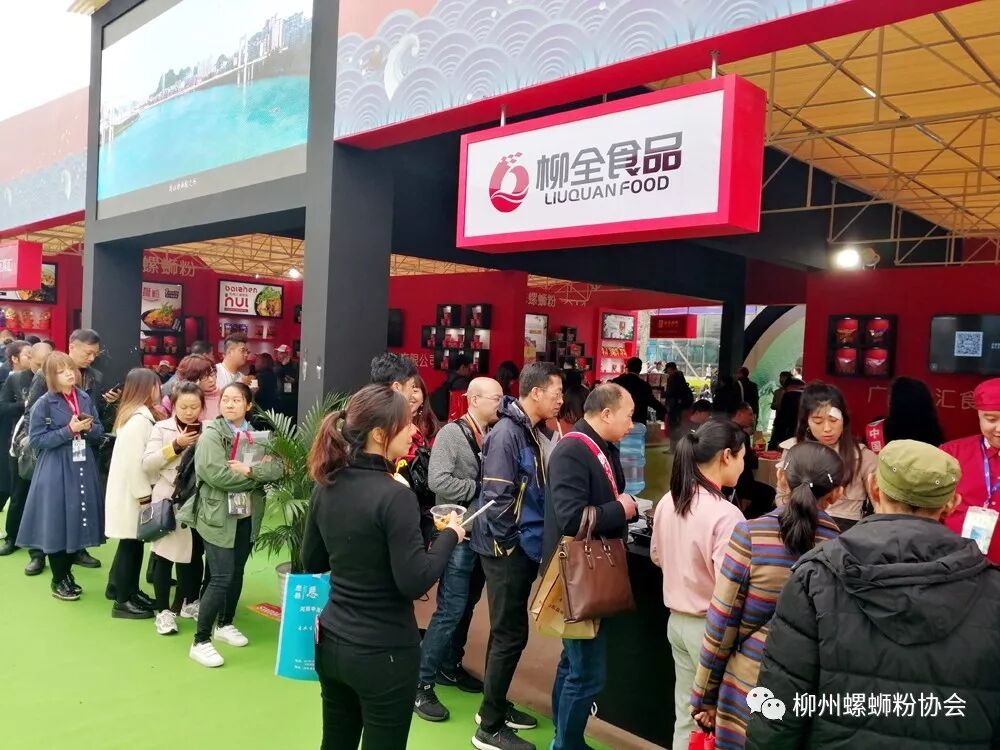 柳州螺蛳粉展馆前人流涌动、络绎不绝