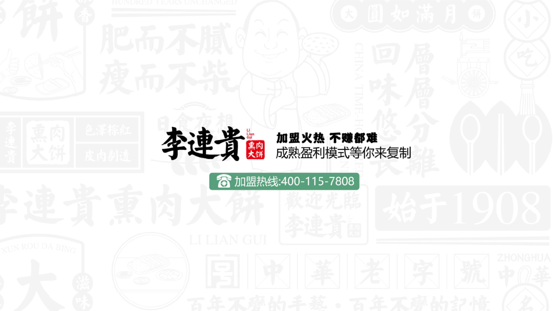 李连贵品牌诞生于1908年冬月,迄今已有115年的历史,是著名的中华老字号。李连贵熏肉大饼以其独特的制作工艺,得到多位国家领导人的赞许。相继荣获了中华人民共和国商务部颁发的“中华老字号”称号、“国家级非物质文化遗产”、“中华名小吃”、“中华餐饮名店”、“中国餐饮百强企业”等殊荣。迄今已发展全国加盟店300余家,深为食客厚爱,成为中华美食独树一帜的瑰宝。目前李连贵品牌经过全面升级后,很多人慕名而来,千里迢迢,只为吃上一口熏肉大饼,吃完满口留香,对其赞不绝口。
