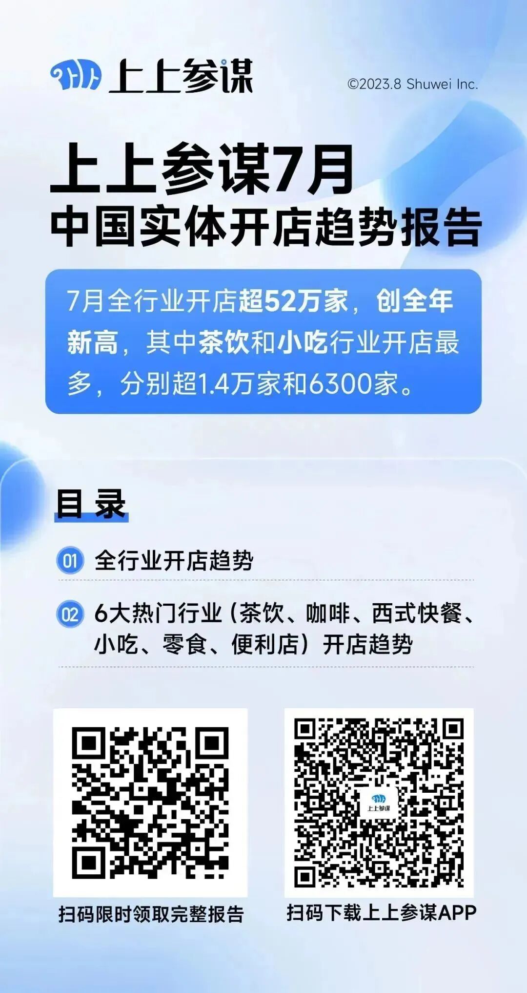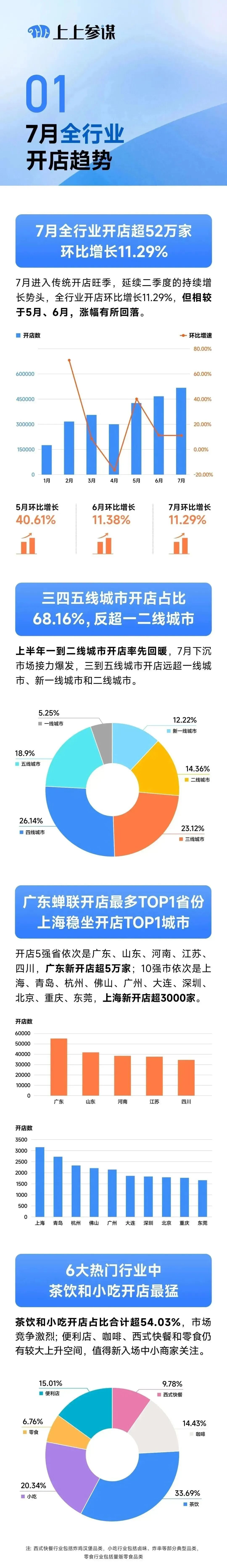 开店数据报告:7月全国开店超52万家,创全年新高,环比增长11.29%