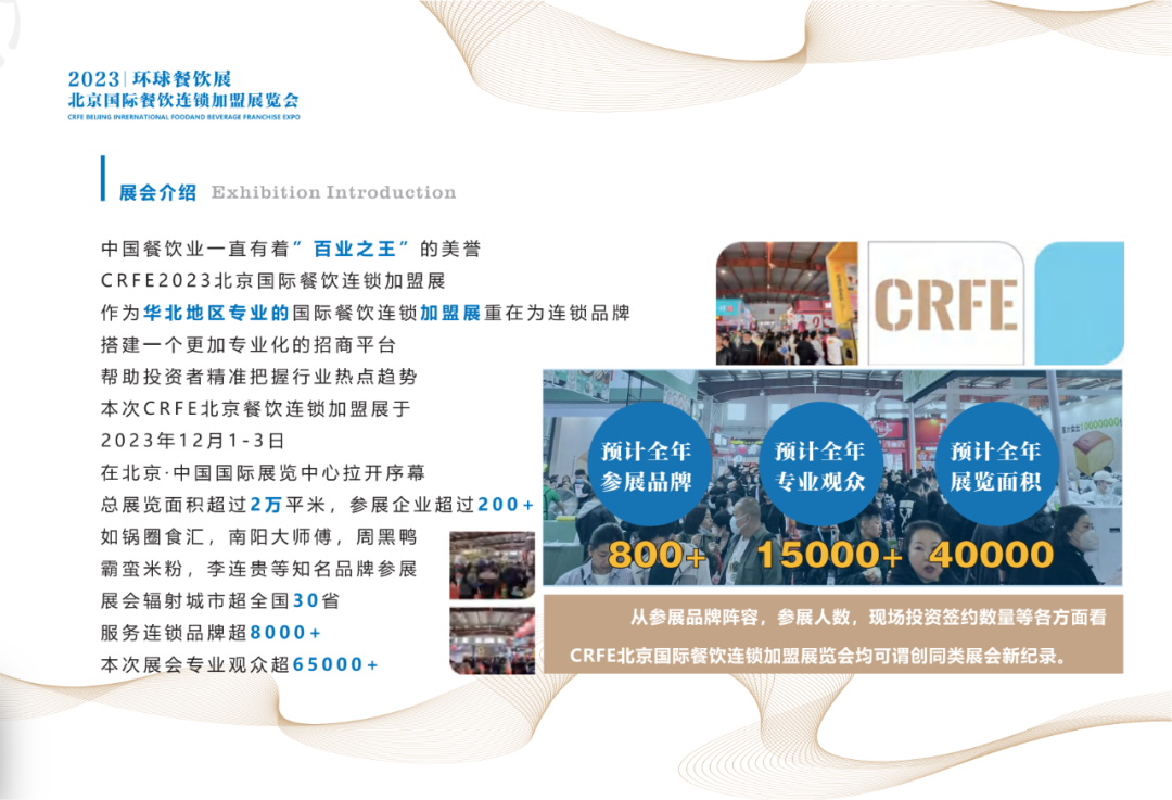 CRFE2023北京国际餐饮连锁加盟展览会时间:2023年12月1-3日地点:中...