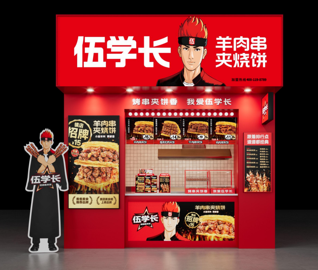 伍学长现烤串夹饼,是郑州伍学长餐饮管理有限公司旗下主打品牌,项目成立于2022年,是一家源于河南、立足中原、布局全国的创新型饼夹类小吃品牌。伍学长凭借强大的品牌创新能力和对市场的精准把控,实行集中加工生产、统一冷链配送、总部标准化运营,供应链全国覆盖的加盟连锁运营模式,受众广泛,高盈利、易操作、快复制,在中国餐饮小吃赛道具备核心竞争力。