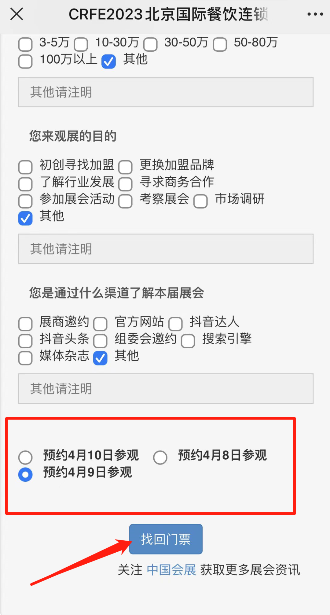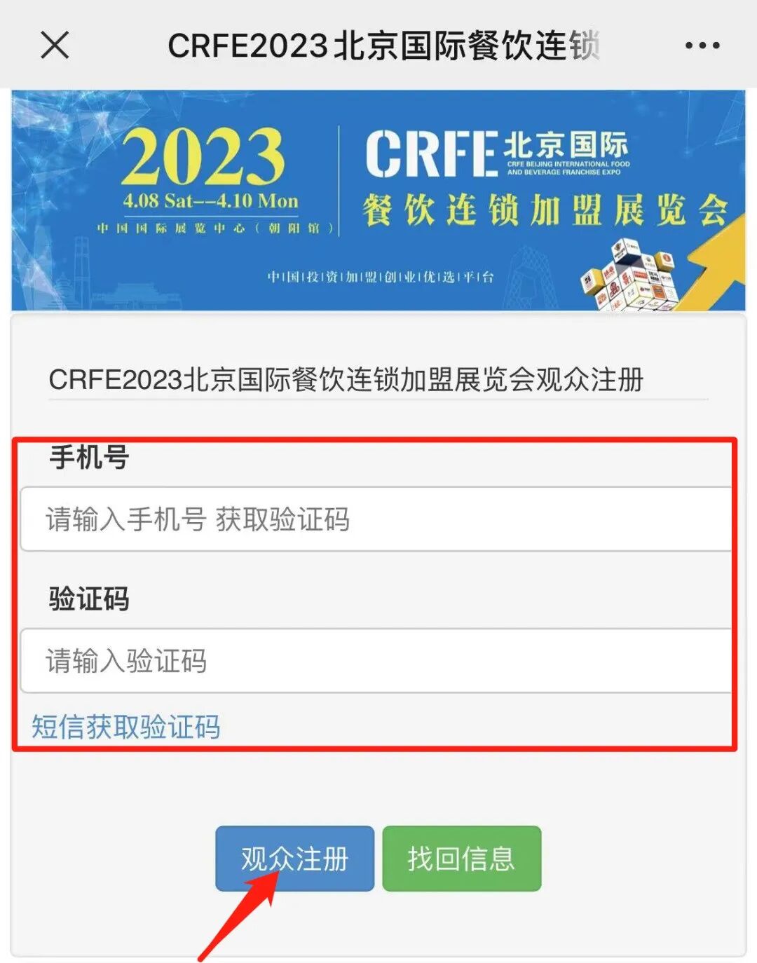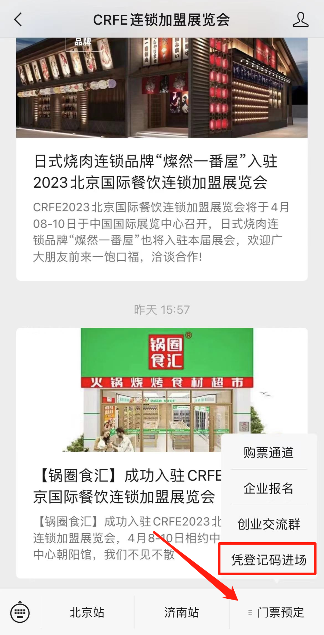 CRFE连锁加盟展览会公众号进入门票预定入口