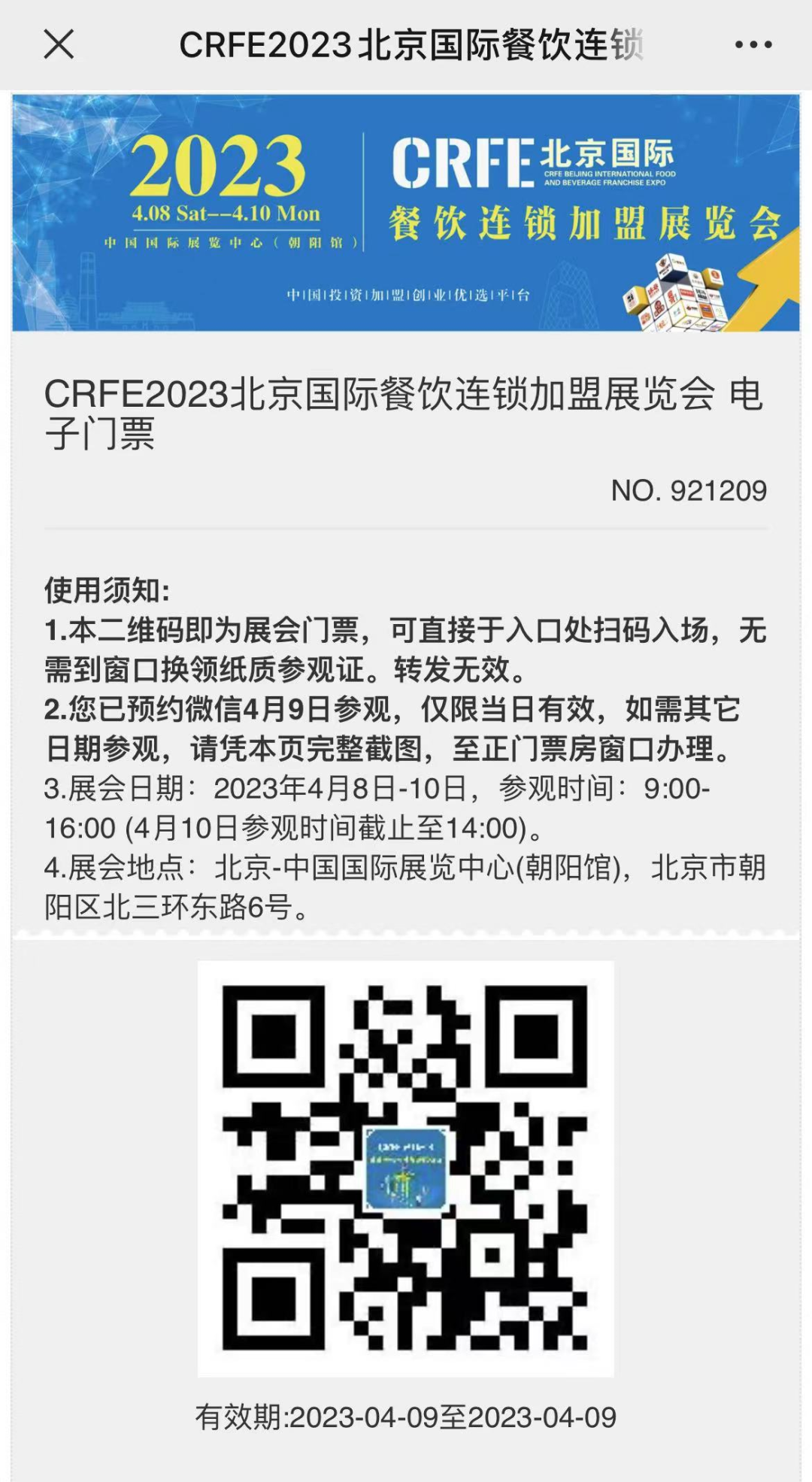 NO.1点击下方CRFE连锁加盟展览会小程序进入购票入口4月8日之前预约为6折优...
