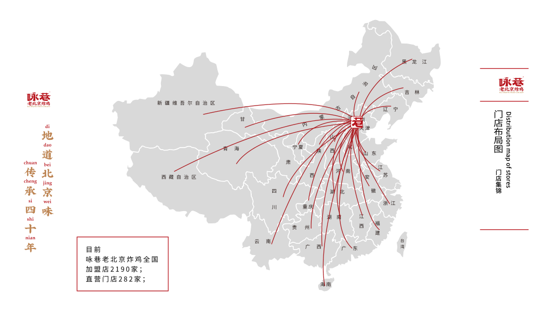 咏巷·老北京炸鸡,中国人自己的炸鸡品牌,隶属于北京京坤巨将餐饮管理有限公司。总部坐落于国家首都北京城市副中心—通州,于2009年实践奠基,经过近十年的实践打磨,于2018年重塑升级。公司集“生产基地、创新型品牌孵化、产品研发、品牌营销、招商合作、运营管理”于一体,已拥有完整的运作和服务体系,是国内知名的连锁餐饮企业。