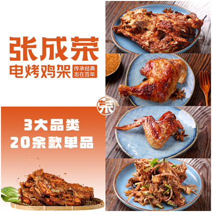 张成荣产品丰富多样,主要分为三大系列:鸡产品(鸡架、鸡脖、鸡腿、鸡爪...)猪产品(五花肉、排骨、月牙骨)素食(土豆、豆皮、素鸡)等20多种美食品种,可以满足不同顾客的需求。