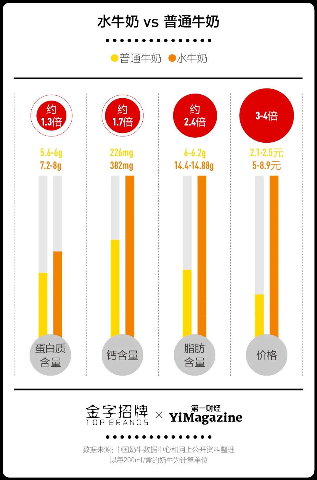 地处亚热带的广西,能够让进口水牛吃着象草、甘蔗梗、菠萝皮和百香果皮长大。水牛产出的奶不仅比普通黑白花奶牛产出的奶蛋白质含量高,口感还甜滋滋的,一直是广西人的私藏好物。如今广西已成为水奶牛大省,产奶量位居全国第一。水牛和黑白奶牛除了外观和饲料不同,产出的奶也不相同。有研究显示,水牛奶的脂肪含量约为4%至6%,最高可达7.59%,远高于普通牛奶的脂肪含量(3.0%至4.0%),这给水牛奶带来了香醇口感。味觉敏锐的广东人不仅也偏爱水牛奶,还摸索了许多吃法,最著名的就是将水牛奶制成了姜撞奶、双皮奶等甜品。在广东顺德大良县,随处可见的传统糖水铺里,老板们每天都要为全国各地尝鲜的食客准备水牛乳甜品,主要原料就是新鲜水牛奶,提取的牛乳色泽乳白,没有沉淀,靠近能够闻到浓郁的奶香,喝起来全无奶渣。无论是在广西每隔500米就有一家水牛奶售卖站,还是广东人喜欢吃浓郁口感的水牛乳甜品,在两广地区,水牛奶是人人皆知的美味乳品。但走出两广,知道它的人就不多了。今天,水牛奶的走出来还要得益于美食自媒体对区域食材和小众食材的不断挖掘。近些年,在牦牛奶、羊奶、骆驼奶……这类区域性乳制品成了消费新宠后,从广西来的水牛奶也在社交媒体上崭露头角,不少博主以“浓稠、清香、没有膻味还营养价值高”的特点向消费者安利。就在最近几年,伴随着可感知的广西水牛奶知名度走向全国,黄阳看到了水牛奶产能的激增。他作为在广西一家本土水牛奶加工企业十余年的老员工,现在负责公司整体销售业务。如果将时间拨回2014年,当时广西政府专门下发《关于做大做强水牛奶业的意见》,指出到 2020 年将努力实现产奶水牛存栏10万头,总产量达16万吨。而如今广西作为我国最大水牛奶生产省份,2019年水牛存栏131万头,其中能繁母水牛49万头,远超目标。到了2020年,广西皇氏集团、石埠乳业、广西百菲乳业有限公司、桂牛乳业、壮牛乳业几家老牌本土企业就承担着全国50%以上的商品水牛奶加工量。据广西水牛奶业发展工作座谈会内容,广西各大水牛奶加工的企业达17家,累计能实现50亿元产值。广西的皇氏、石埠、百菲、桂牛、壮牛等本地老牌企业是水牛奶的主要生产企业。虽然不是当地最大的生产企业,但黄阳所在公司自有生产基地,现存栏水牛约1500头,加上不断扩展与周边养牛农户合作,公司还形成了15个养牛合作社组织,平均每个合作社拥有200-500头牛,能保证公司每天收购10-20吨水牛奶。公开资料显示,广西皇氏集团水牛奶系列产品产销量名列全国第一,为中国最大的水牛奶生产加工企业。从皇氏集团经营状况来看,2012-2021年皇氏集团营业收入整体增长,截至2022年上半年,公司实现营业总收入13.19亿元,同比增长0.9%,实现归母净利润9597万元,同比增长813.6%。其中,水牛奶加工收入占皇氏集团营业收入86.9%,毛利率20.6%,是公司主要收入来源。在黄阳看来,广西当地政府扶持水牛奶产业发展的信号近些年格外明显。在今年2月广西人民政府办公厅发文的一则关于助力水牛奶发展若干措施中,政府对引进高产奶水牛养殖户按照1万元/头的标准予以补助,对达到要求的新扩建奶水牛养殖场最高给予500万元一次性奖励。近一个月全国各地连着跑各种水牛奶推荐会的经历,更让黄阳预判未来随着水牛奶知名度往上提,它的需求量、销量都会往上涨,生产加工企业对奶源的需求量肯定也要跟着往上涨。一旦需求上来,随之水涨船高的便是水牛养殖成本。一位在石埠乳业负责加盟招商工作的经理告诉《第一财经》YiMagazine,养牛投资大、周期长、技术难度高。现在养殖户每年成本高达4万每头,比两年前翻了一倍。以此同时,每公斤收购价也从原来7-8元涨到13-14元。为了解决奶源养殖问题,黄阳所在生产加工企业还作为奶水牛养殖户的担保方,提供贷款给农户购买水牛并负责兜底,如果养殖户不养了,由企业把水牛收购回去养。黄阳向《第一财经》YiMagazine表示,做水牛奶最大的门槛就是奶源,没有充足奶源,销量就无法提升。即便是作为水牛奶生产大省,广西水牛的存栏量相比奶牛也存在明显的差距,这在一定程度上也影响了水牛奶的产量。普通黑白花奶牛,即使低产也可产奶3000-4000公斤,高产的通常可以达到6000公斤以上。而一头水牛的产奶量一般每年只在2000公斤左右。从目前市场上的水牛奶产品来看,黄阳还介绍到一些现实问题,比较明显的是水牛奶品类较少,在一定程度上影响了市场的发展壮大。但有限的产量以及人们对水牛奶与日俱增的需求却让水牛奶的价格居高不下。纯水牛奶的价格经常是普通纯牛奶的至少2倍,比起高端的纯牛奶价格也高出了不少。02水牛奶搭上新式茶饮快车