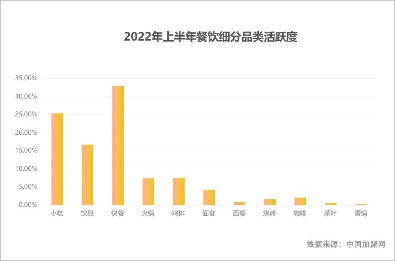 因此,2022年上半年,很多餐饮加盟品牌着力推动加速向数字化、零售化方向转型,将线上化运营作为品牌加盟的新模式、新技术,重新构建人、货、场三者之间的关系,同时将品牌的核心竞争力聚焦供应链、产品标准化等方面,并为创业投资人提供运营、数据、营销和管理全方位的服务,让创业投资人对连锁加盟品牌更加放心。在2022年中国餐饮加盟行业白皮书有提到过,在餐饮加盟品牌中,有42%的品牌凭借在合作模式、运营管理、数字化升级等方面的突出优势,逆势加速拓店,开始布局或加速加盟业务。