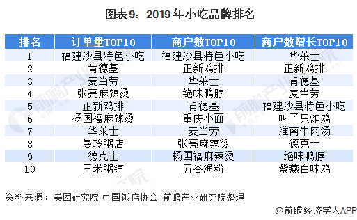 数据显示,2019年小吃品类店铺数量排名前五的品牌分别是沙县小吃、正新鸡排、华莱士、绝味鸭脖、肯德基。从上述榜单可以看出,连锁品牌受到了大众的认可。这是因为相较于其它当地小吃,连锁品牌无论是在食品口味上,还是在食品质量上都比较有保证,往往是消费者的首要选择。