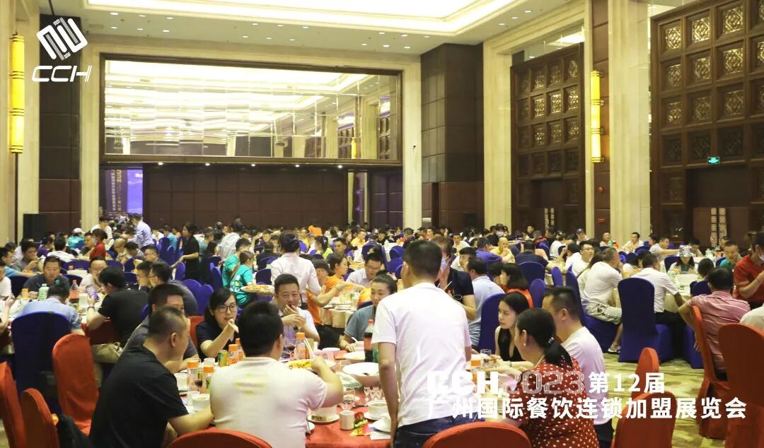 8月25日晚是CCH2023第12届广州国际餐饮连锁加盟展的重磅环节——答谢晚宴。上百位餐饮头部品牌、区域黑马品牌负责人齐聚一堂,庆贺品牌发展的新高度。