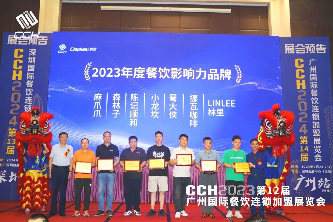 麻爪爪、挪瓦咖啡、LINLEE林里手打柠檬茶、小龙坎、蜀大侠、陈记顺和、森林子、咖啡之翼、南洋大师傅、鹅岛、来桶饭、包道、煎饺王子、五谷渔粉、米代言、吃贝荣获“2023年度餐饮影响力品牌”。